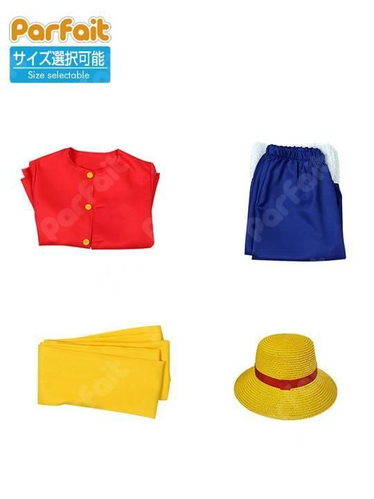 《男性XL・3L・4Lサイズ即納可:ウィッグ付き新品コスプレ衣装》ONE PIECE/モンキー・D・ルフィ